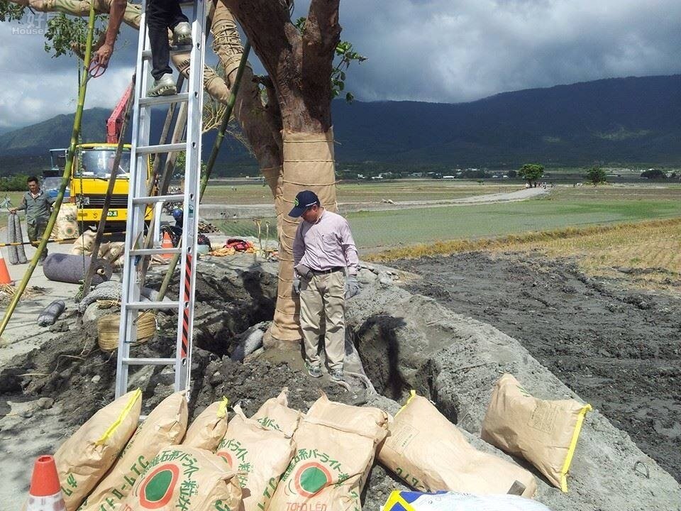 金城武樹重新扶正(花蓮/彭興讓攝)