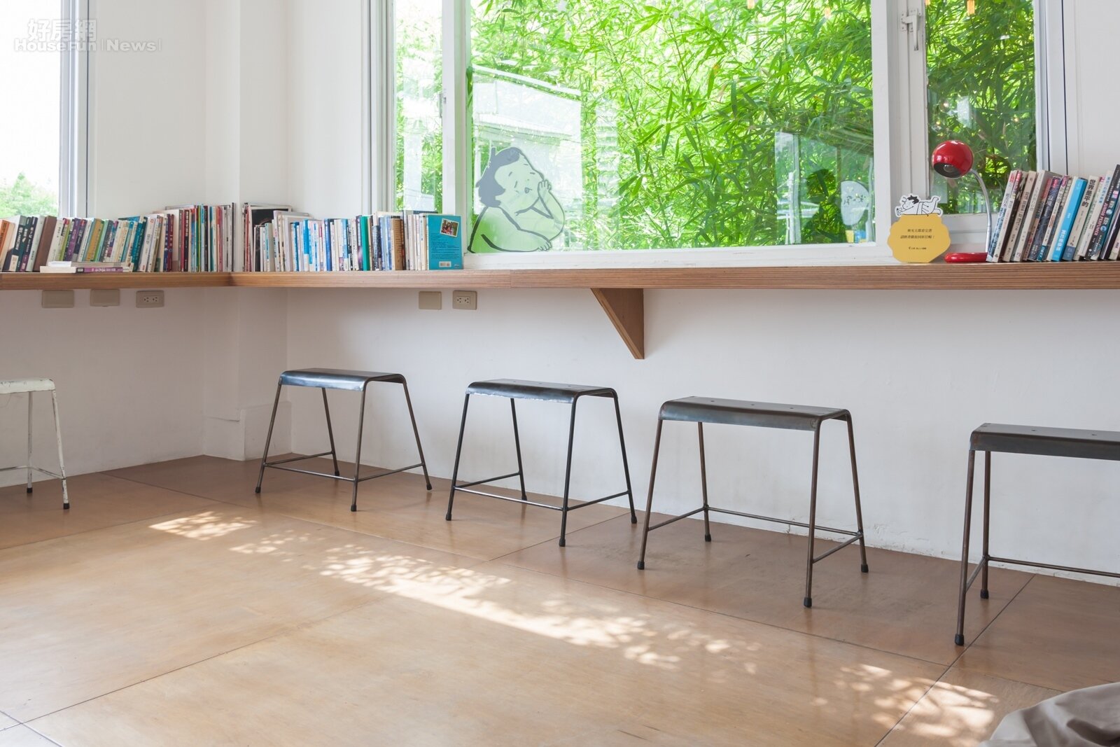 秋陽灑落在大片對外窗,竹葉所造成的影子映射在木板地上,說是畫也可以。