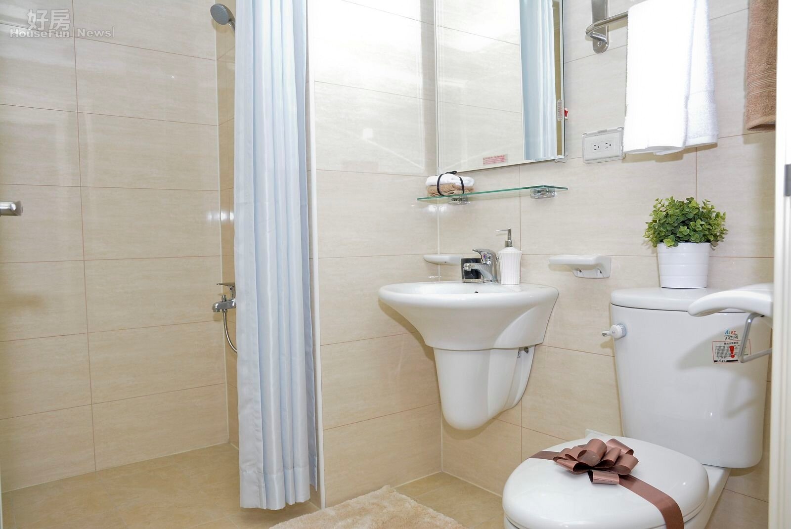 衛浴設備有乾濕隔離的設計,高度也都符合通用住宅的要點。