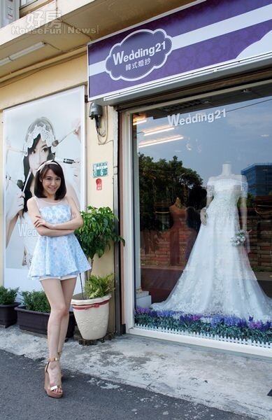 佩佩去年成立自「Wedding21」韓式婚紗店,位於距離桃園火車站後站約5分鐘路程,周遭環境單純且清幽。