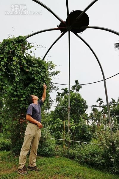 利用88風災廢棄鐵架設計的蜘蛛戶外藝術作品。