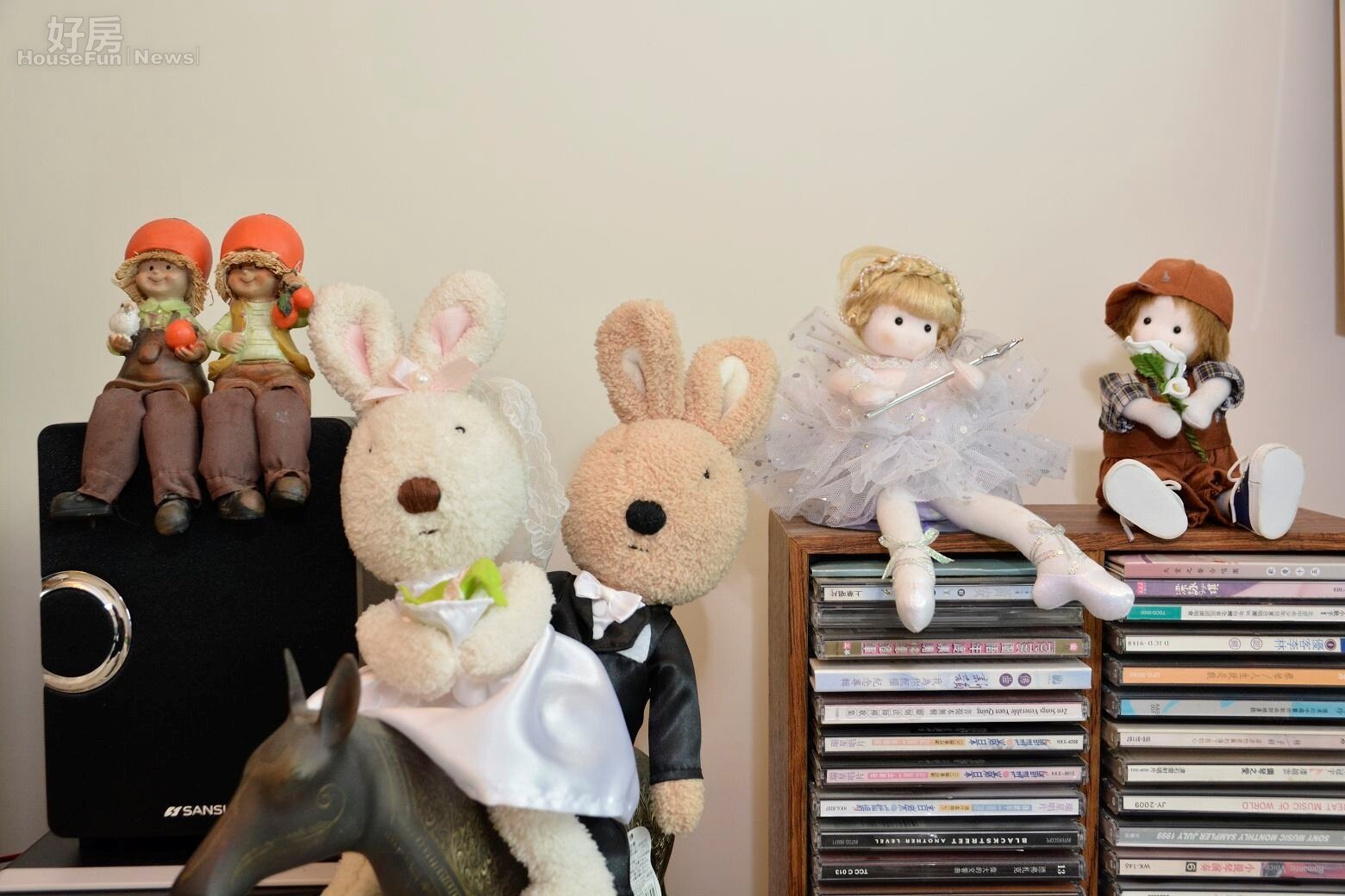 甜心主播廖盈婷的家可愛小擺飾,喬遷時朋友贈送的荷蘭娃娃與彼得兔。(好房News記者 陳韋帆/攝影)