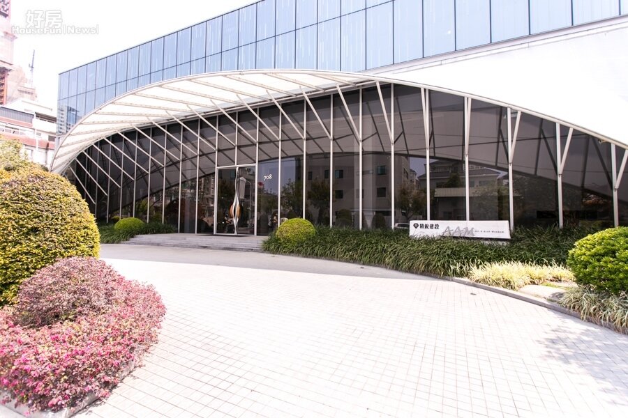 精銳建設總部外已弧形加上方形的外型交互而成。充滿藝術的線條,很難想像這是台中大型建商的總部。