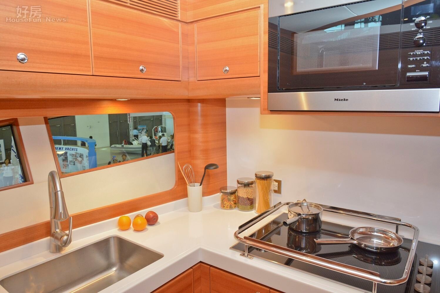 遊艇中的廚房設施應有盡有,許多小坪數住宅的廚房也沒如此齊全。(圖/文 陳韋帆)