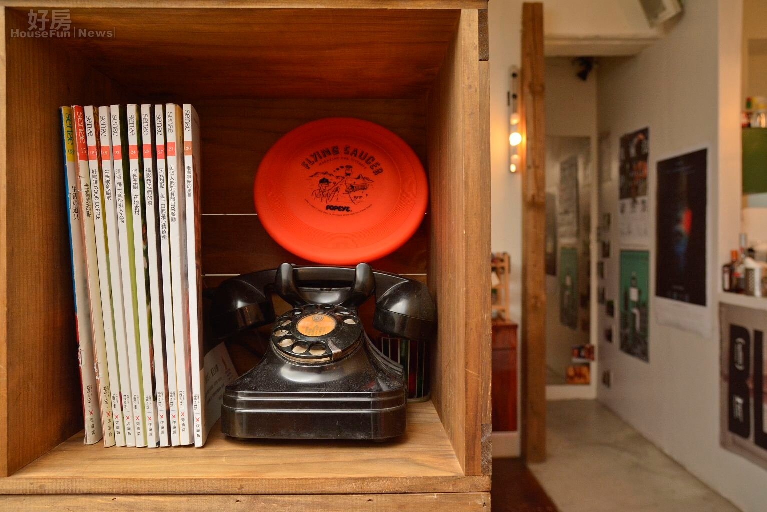 撥盤式電話與近代書籍混搭的擺放,展現出另外一種衝突美感。(好房News記者 陳韋帆/攝影)