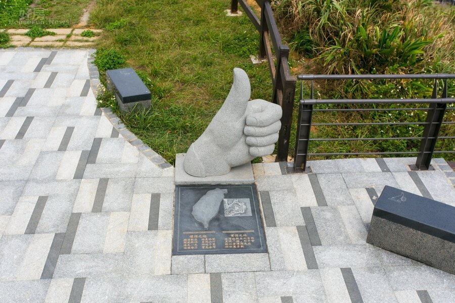 觀景台上可以看到許多比出「讚」的石頭雕刻的手,這是因為這裡的地形鳥瞰就像是一隻比著讚的手。