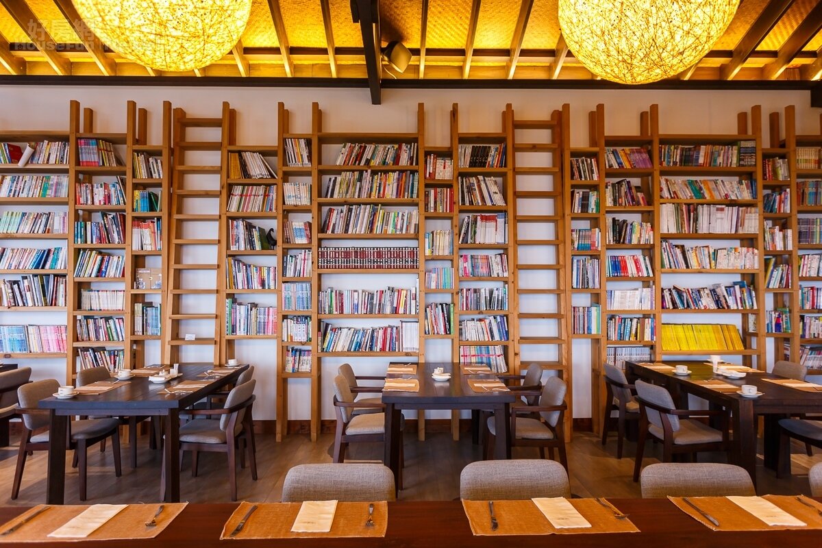 草山食堂中最醒目的莫過於一整面牆面的書櫃,上面的書可不只是裝飾而已,而是真的可以拿下來閱讀。