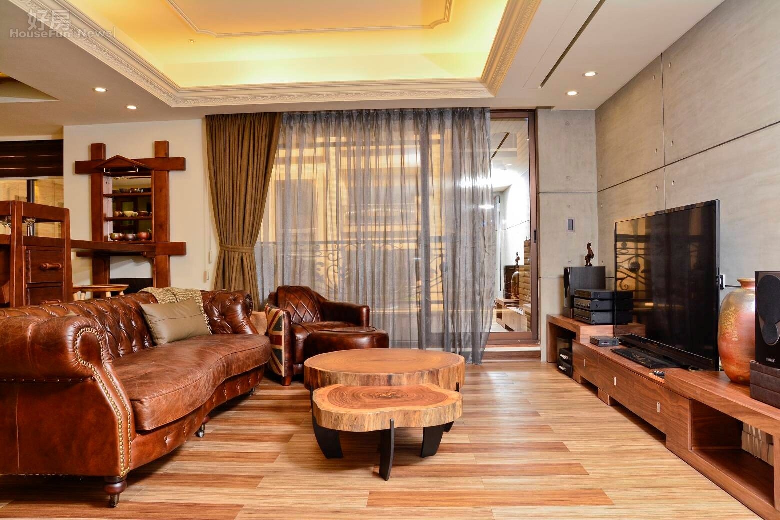 張至正以水泥砌牆與特殊施工,仿清水模樣式打造客廳的牆面,價差可達十分之一,質地別有風味。