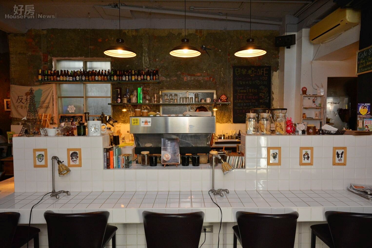 吧檯是以白色的瓷磚鋪成而成,初進入時感覺似乎很簡陋,但坐下一會兒就會發現,白磁磚竟然與紅磚意外的融為一體。