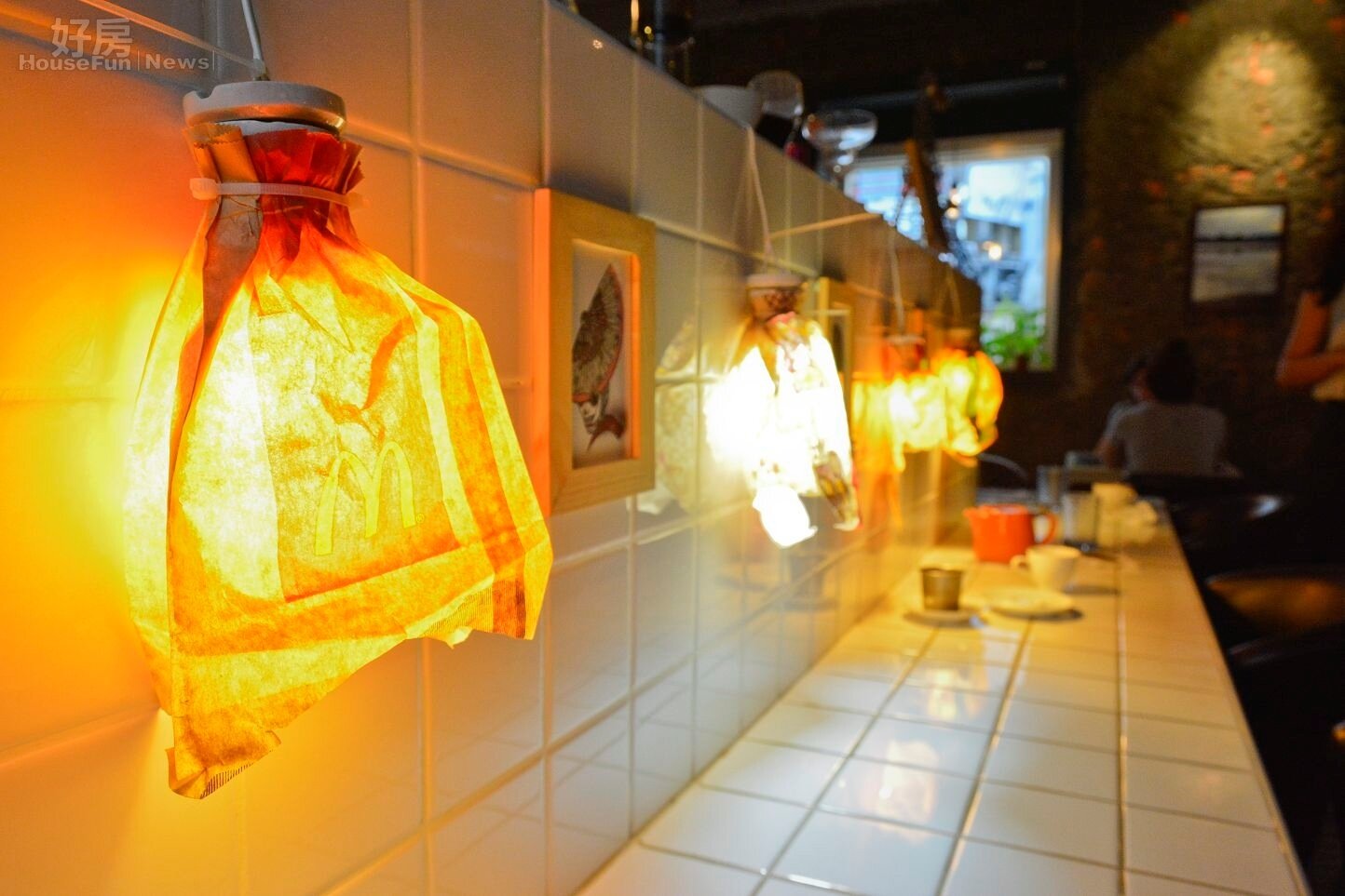 突發奇想也能省錢又獨具特色,王凱文在一次邊吃消夜邊思考吊燈的燈罩該如何處理時,突然發覺手上燈袋就是一個好材料,隨即動手製做了起來。
