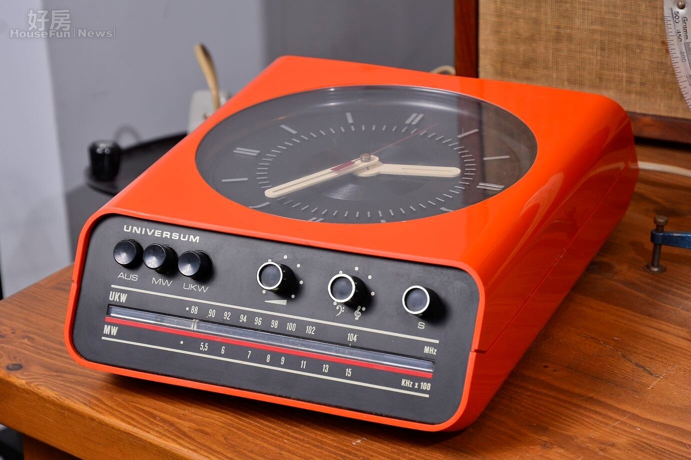 義大利EUROPHON壁掛式收音機鐘(h30系列)/25,000元1960年代左右的產品,既可收聽廣播,還能判別時間,鮮豔用色與設計如今看來美麗依舊。