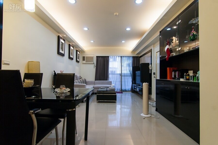 這次裝修的重點在客廳。打掉原本難看的磁磚地,換上高雅大方的紋路地板。$80,000