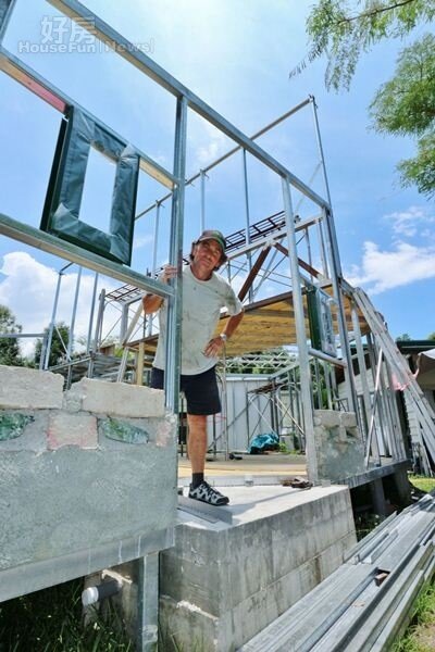 目前正在動工的第五間新房,羅約翰說是要自己住,也是第一棟採用鋼骨結構的紙房。