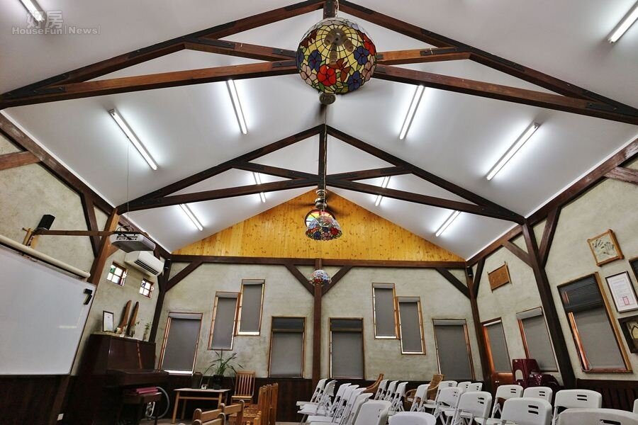 報紙厝裡面有著彩繪玻璃的風格,與類似教堂的窗框,現在做為向訪客傳達環保意念的活動教室。
