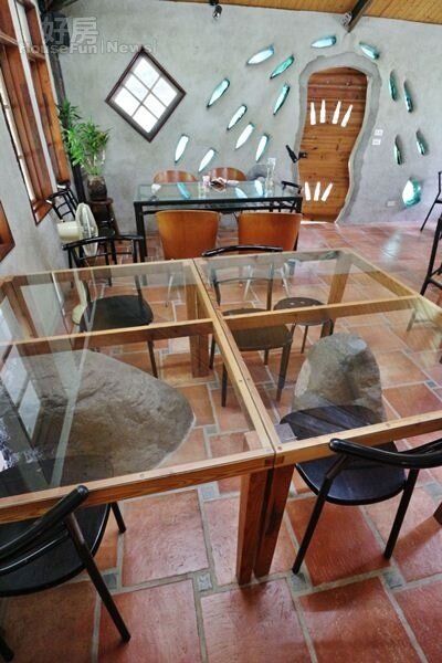 每張桌子都是羅約翰自己動手設計和製作,而且用的都是回收的木料和玻璃。