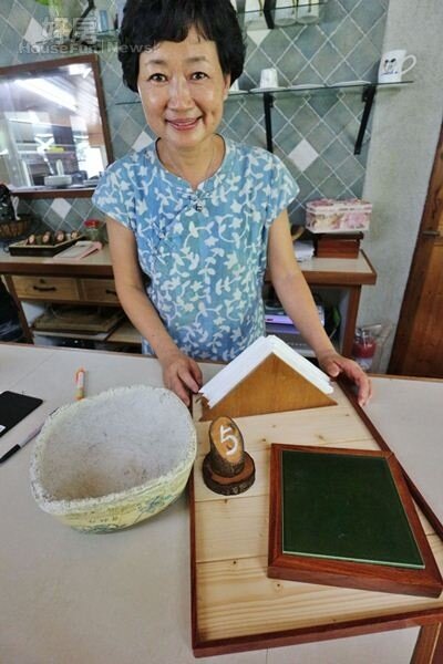 吳連春前面這些餐廳用具,都是羅約翰親手做出來的。