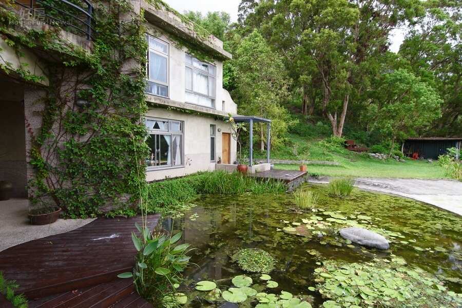 種滿水生植物的小池塘,兼具造景與溫度調節的功能。