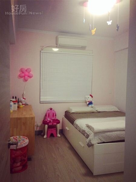 女兒的房間雖只有四坪大,但佈置得溫馨可愛。