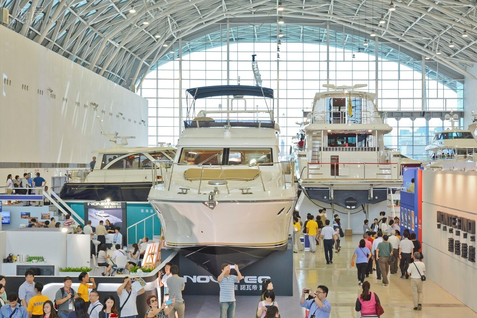 4億「海上豪宅」體驗 展覽期間,在高雄展覽館內可見到40艘各式遊艇、帆船、動力船,參展的有來自瑞典、德國與台灣共27家業者,館內遊艇售價從新台幣3000多萬元至4億元以上皆有,民眾同時可欣賞20艘停放在22號碼頭的遊艇。(文/馮牧群 圖/陳韋帆) 535 下一張