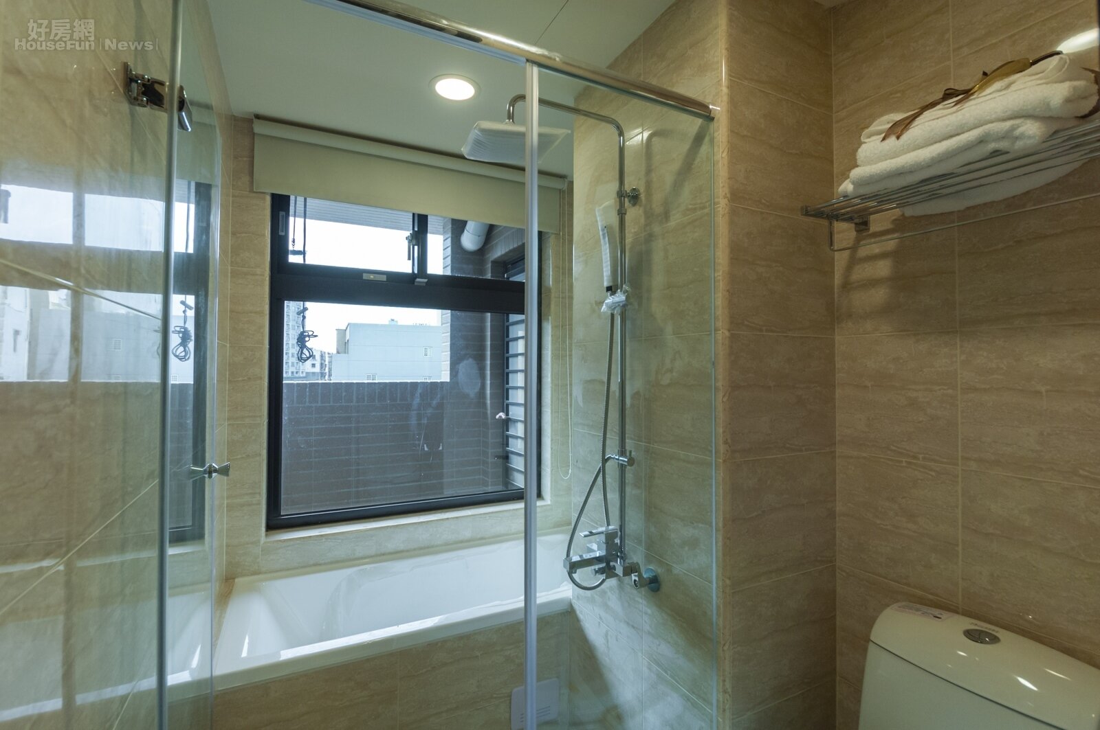 共用衛浴採乾濕分離的方式設計,但是少了些可懸掛毛巾以及換洗衣服放置處。