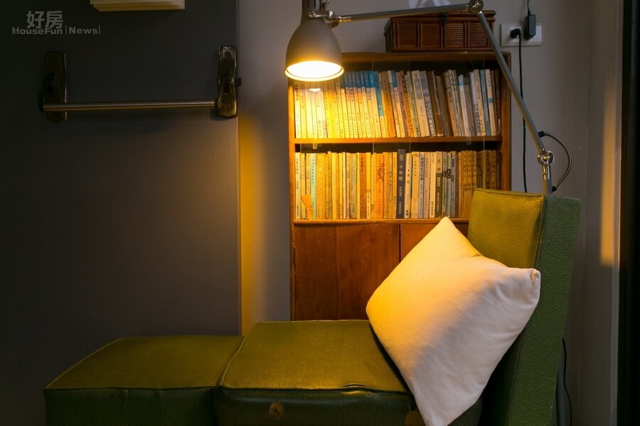 數十年年紀的躺椅沙發,在檯燈的照耀下,訴說當年的風華過往。