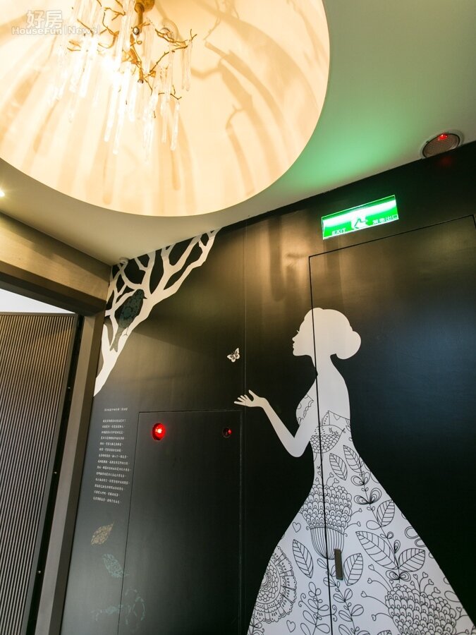 惹墨以藝術為核心,打造永續建築。一出電梯就可看到精緻的吊燈以及位於牆上的藝術繪品。