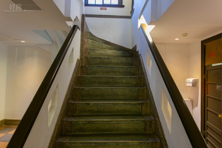 現在難以見到的磨石子加上純銅止滑條的水泥階。