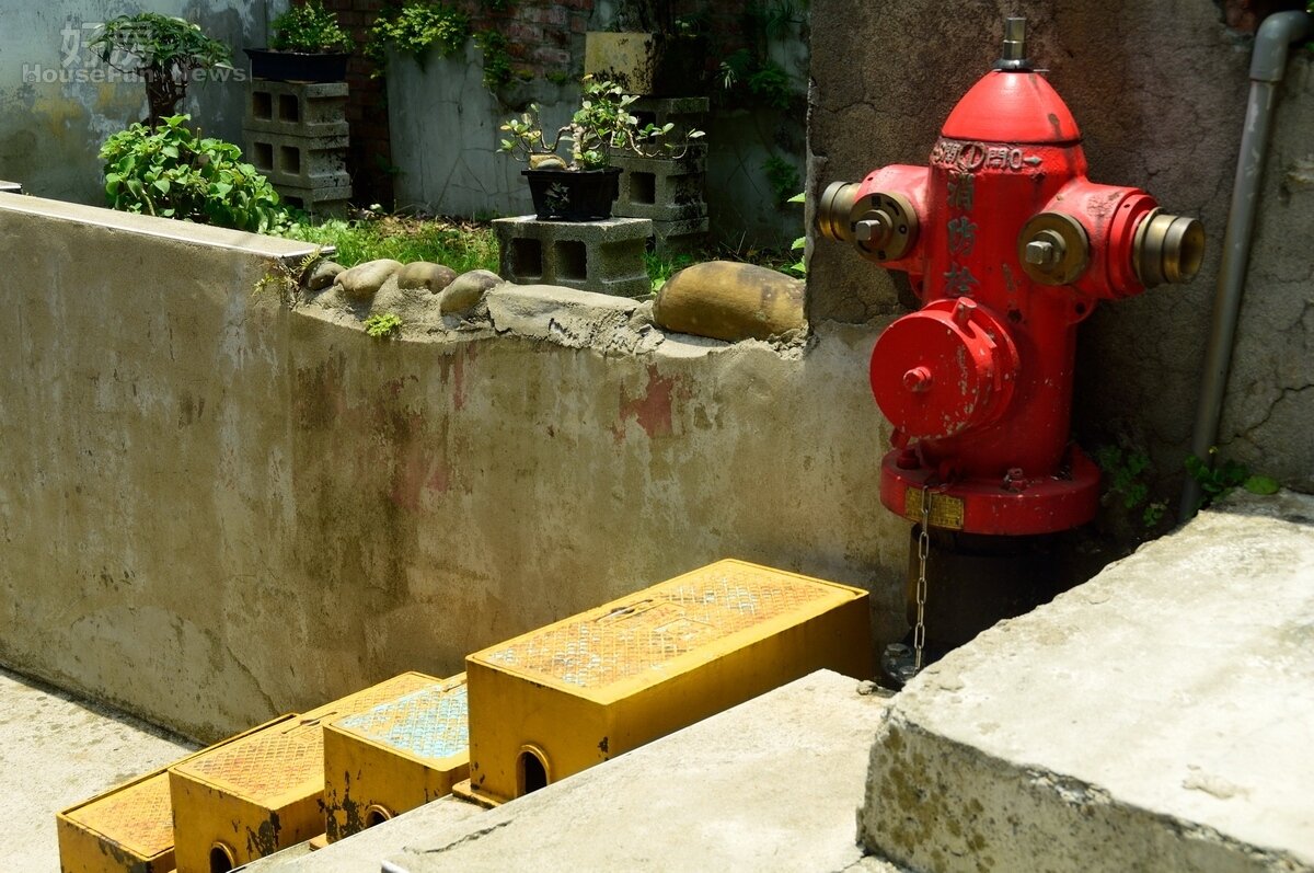 紅色的消防栓與黃色的鐵箱,形成強烈的視覺印象對比。