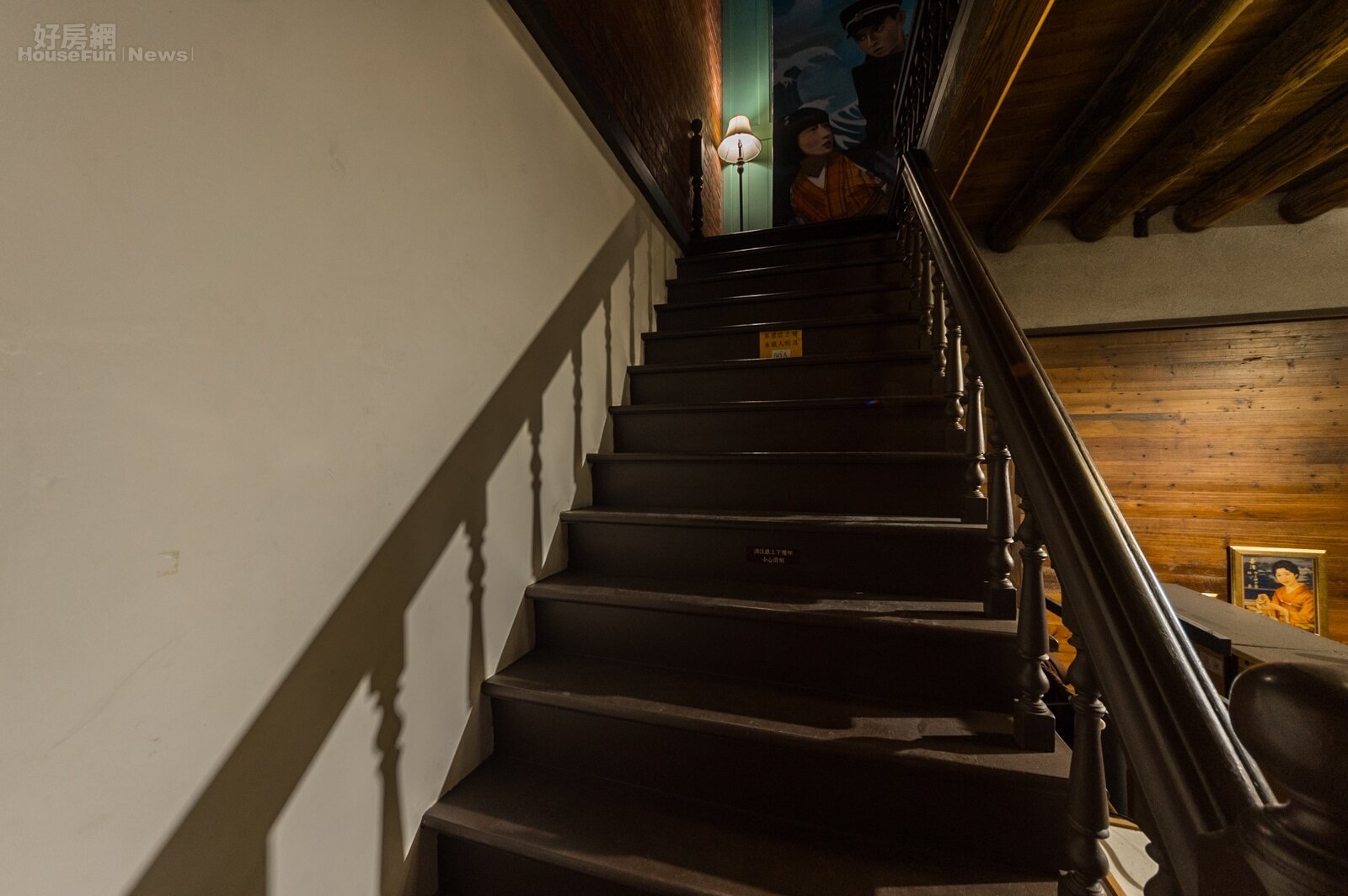 文青一小時—紫色大稻埕,古厝品茶香(下) 三層樓洋房設計的新芳春行,每樓相通的樓梯設計各有巧妙。以一樓通往二樓的樓梯而言,考量二樓作為聚會場所,因此上下使用樓梯的人也會比較多,所以寬度就做的比一般樓梯還要寬上許多。 797 下一張