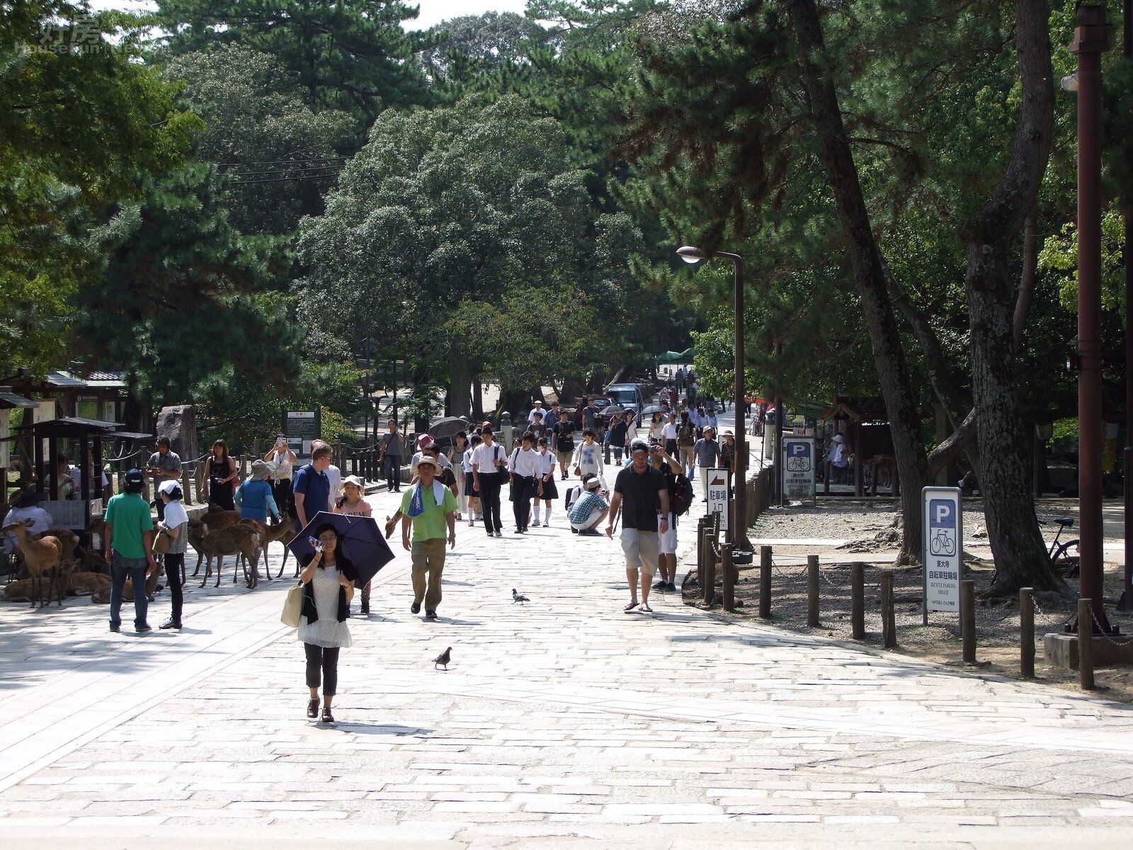 夏日炎炎,東大寺的周邊並未有太多的遮蔭,前往參拜的遊客最好做足防曬準備。