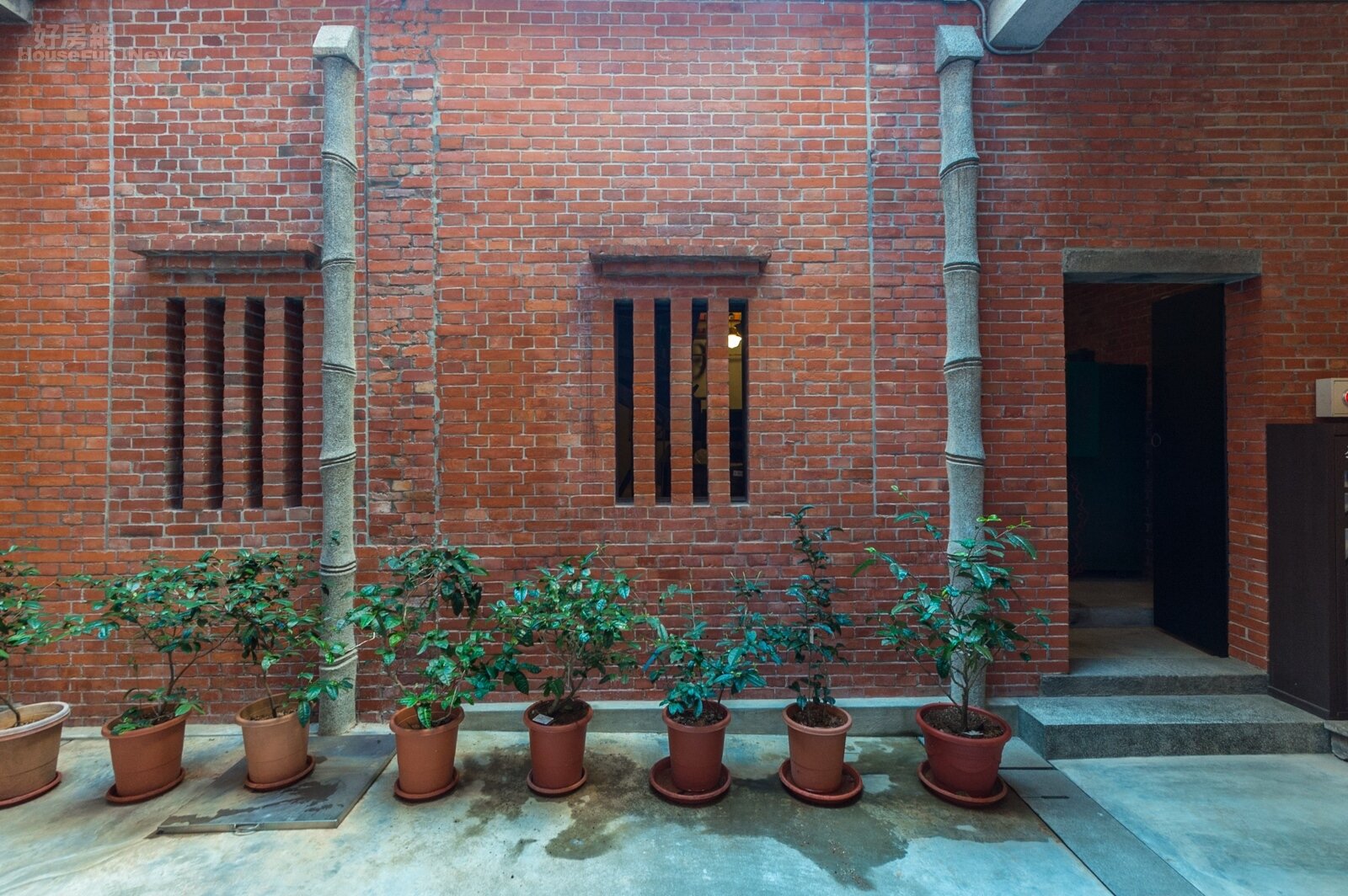 在天井這裡不要錯過的就是這兩隻水泥做成竹子樣的排水管。竹節、紋理仿得唯妙唯俏。而竹在華人的認知中有著「節節高升」的寓意,