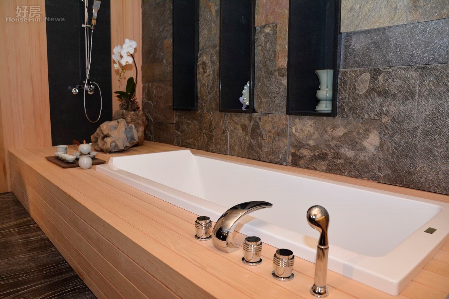 木頭與浴缸的搭配,可在家享受到日式泡澡的感覺