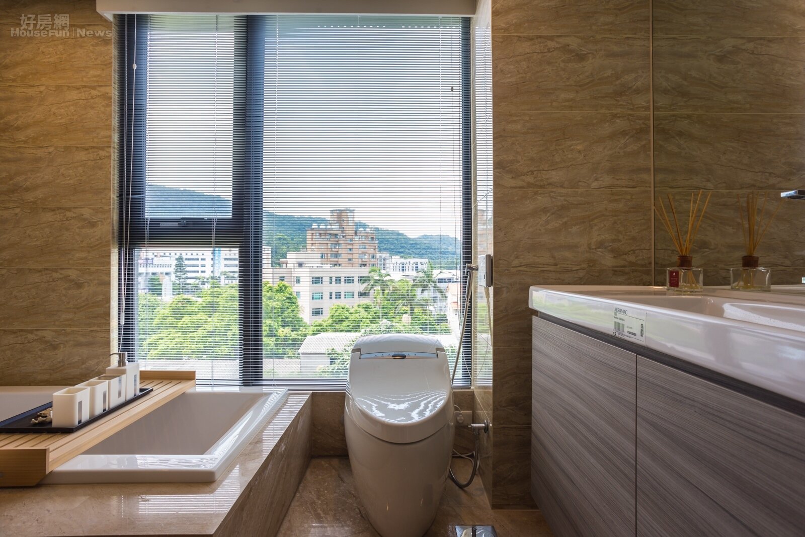 一層一戶豪宅慢慢逛,充滿溫馨的寧靜宅 由於是一層一戶的設計,因此可大膽的使用大片玻璃窗進行採光。以主臥室浴室而言,就擁有大片的落地窗引入外面光線。白天不用開燈就很明亮,晚上洗澡若擔心春光外洩,降下百葉窗就可以。大膽的人則可以關閉浴室燈光,就著外面夜景泡澡洗卻一天的辛勞。 2394 上一張 下一張