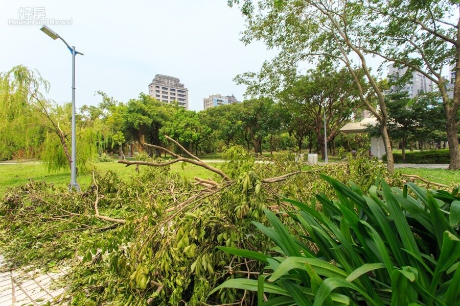 公園中幾乎沒有一處樹木是完整的。不管老樹新樹都敵擋不了這場颱風的威力。