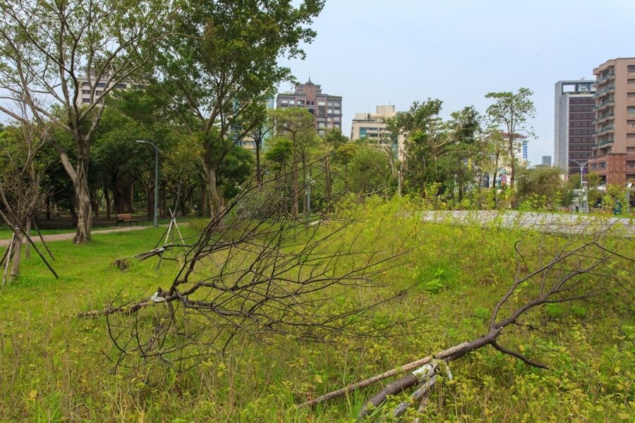 傾倒的櫻花樹,民眾明年春天要看到滿枝頭的櫻花已經不太容易。