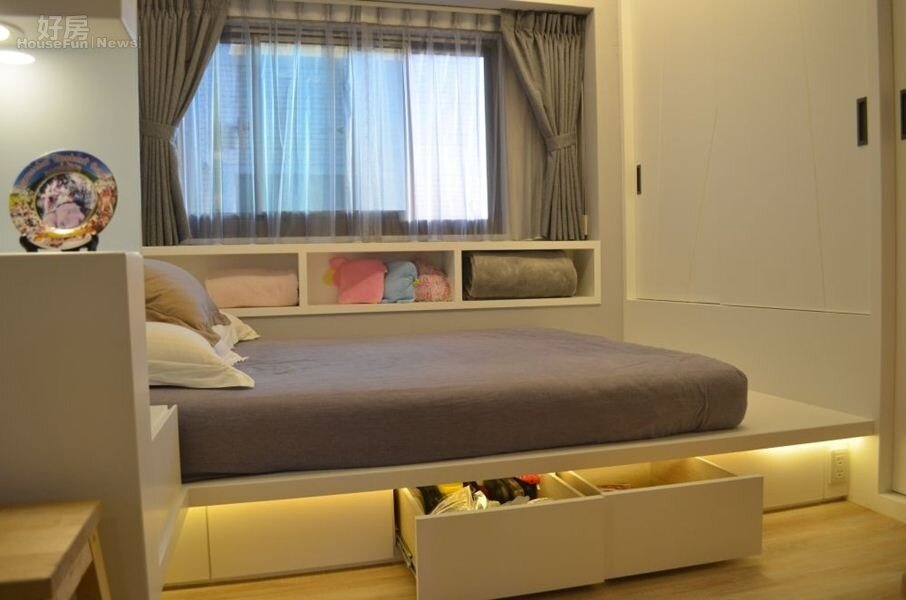 客房採用隱藏式衣櫃,床鋪下方也做了小櫃子。