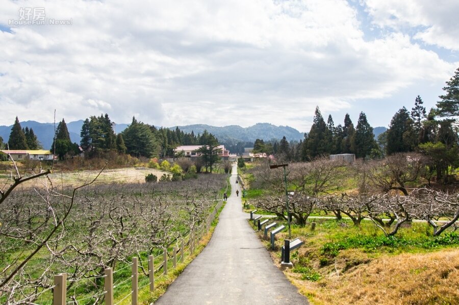 農場步道兩旁都是果樹,預計五月底開始就可品嚐到水蜜桃以及蜜蘋果。