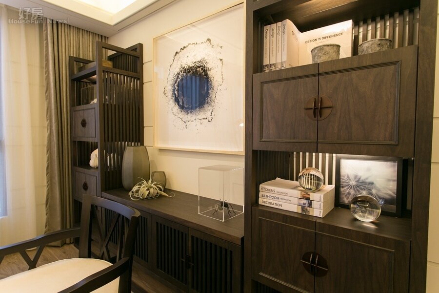 為了營造更大的空間視野,原本的單獨一間的書房設計概念逐漸改為開放空間,並且與客廳、飯廳做連結。