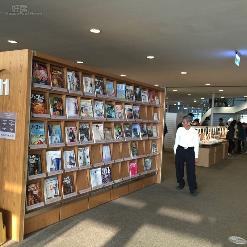 除了書籍,中外雜誌掛滿好幾座牆面