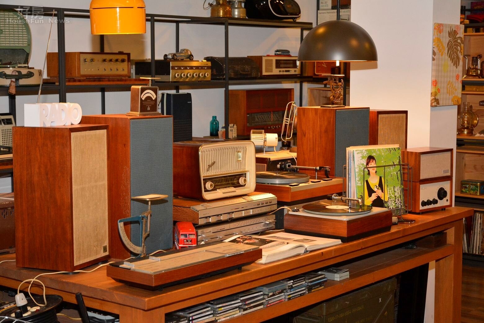 一聽鍾情 走進迴聲隧道 店裡的老式收音機可分為「真空管與電晶體」兩種,真空管收音機有許多是木製外型,播放人聲特別柔和;從電晶體收音機播放的音樂,同樣具溫暖感,但較真空管聲音清晰。可無論哪一種,對比於現代音響多顯銳利的音色,老式收音機都讓聽者有一股被音樂包圍的緊密感。 893 上一張 下一張