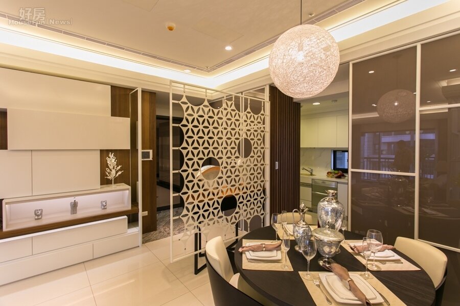 在餐廳部分,也盡量不跟客廳有所相隔,通透一體的設計,讓整體空間感更為放大。
