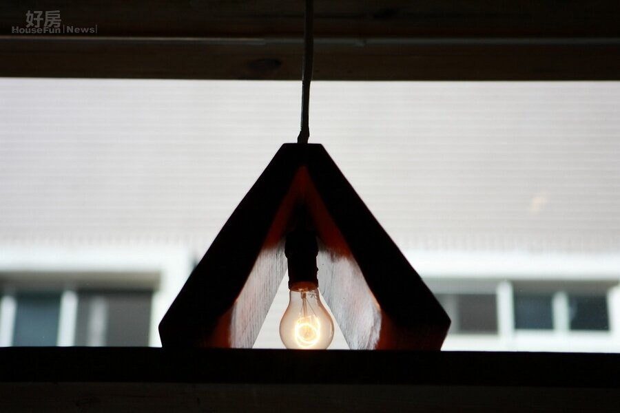 木頭雕刻而成打開的書本形狀燈罩,十分的有Fu。