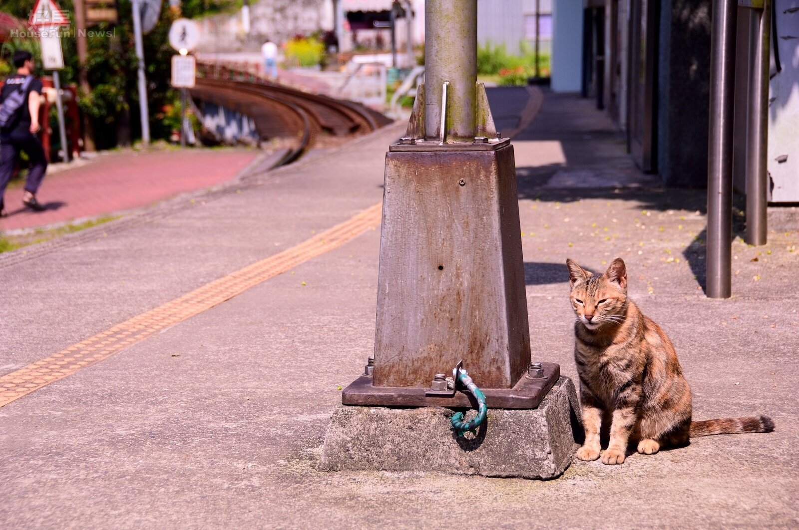 夏日的午後,慵懶的貓在月台上靜靜的坐著,時光如同凝結一般。(好房記者張聖奕/攝影)