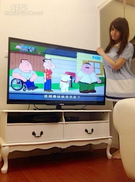 純白夢幻、帶點羅馬風格的電視櫃,同樣為小小瑜在網路上挖到的寶,至於50吋電視,小小瑜表示大螢幕能讓她看更清楚韓國演員的妝髮技巧。