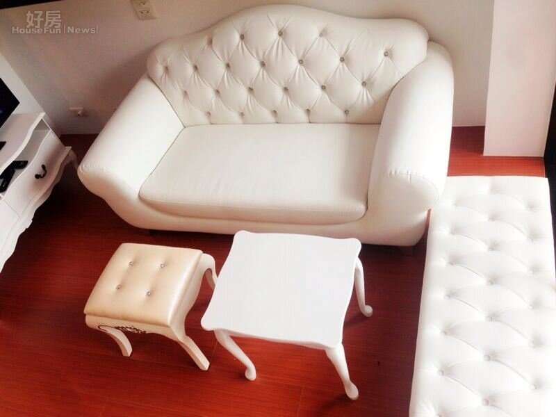 客廳裡沙發與小桌子皆為小小瑜從網路上直接找到工廠源頭購入,相較於一般傢俱行必須請師傅特殊訂作省錢不少。