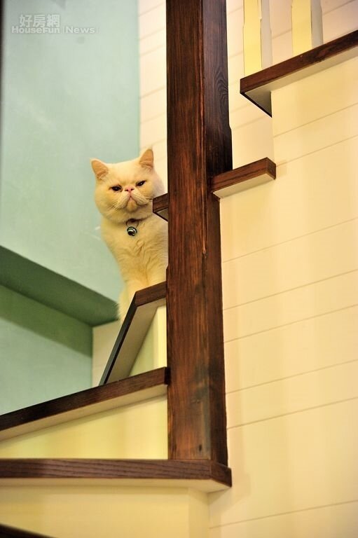 安靜乖巧的冬冬是阮春華的愛貓,靜靜在樓梯轉角處等著我們上樓探探。