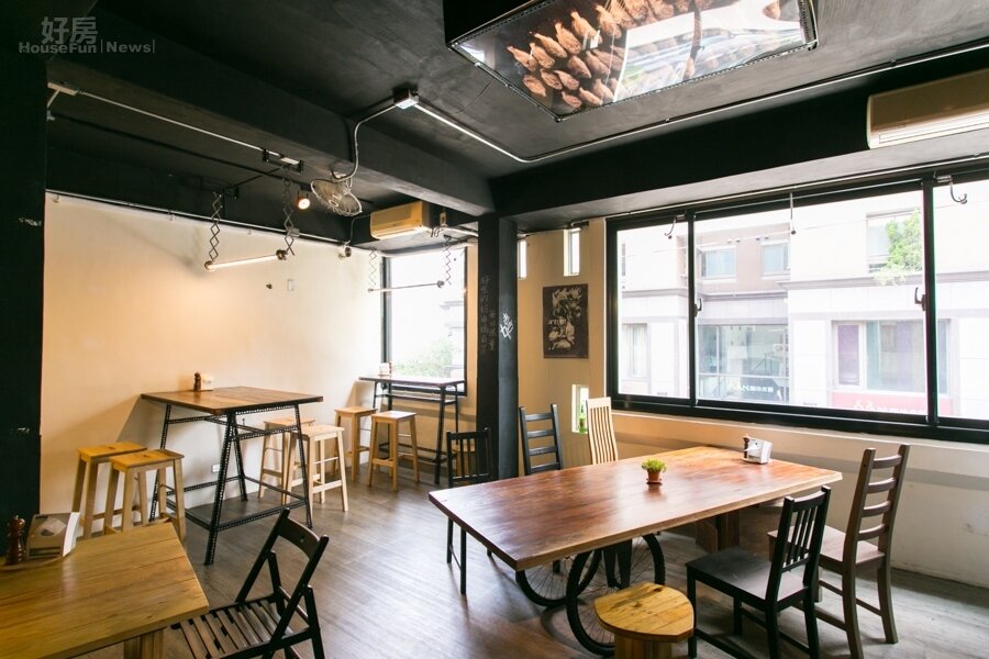 牛逼館子中的所有餐桌椅子,都是經營的老闆兄弟倆四處尋找,利用人家不要的廢材料再生而成,充滿著濃濃的復古工業風情。