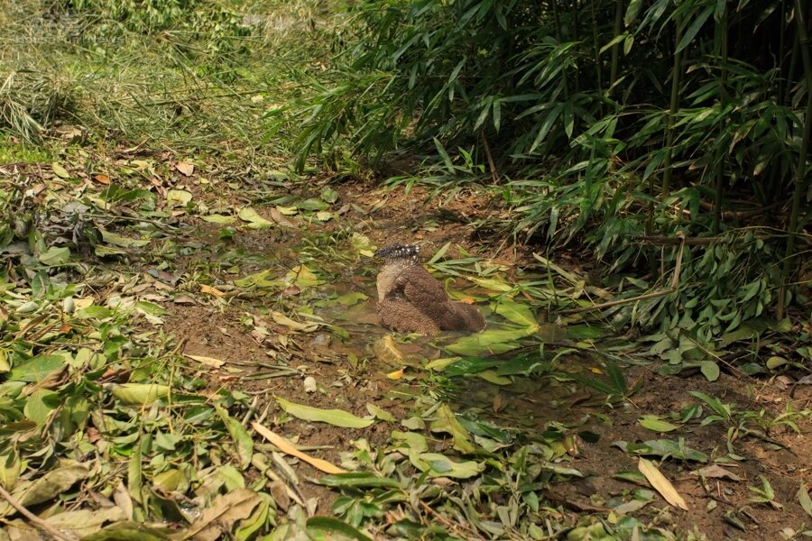 黑冠麻鷺在路旁的積水中洗澡,看到記者靠近也只有快步閃開而沒有飛起。