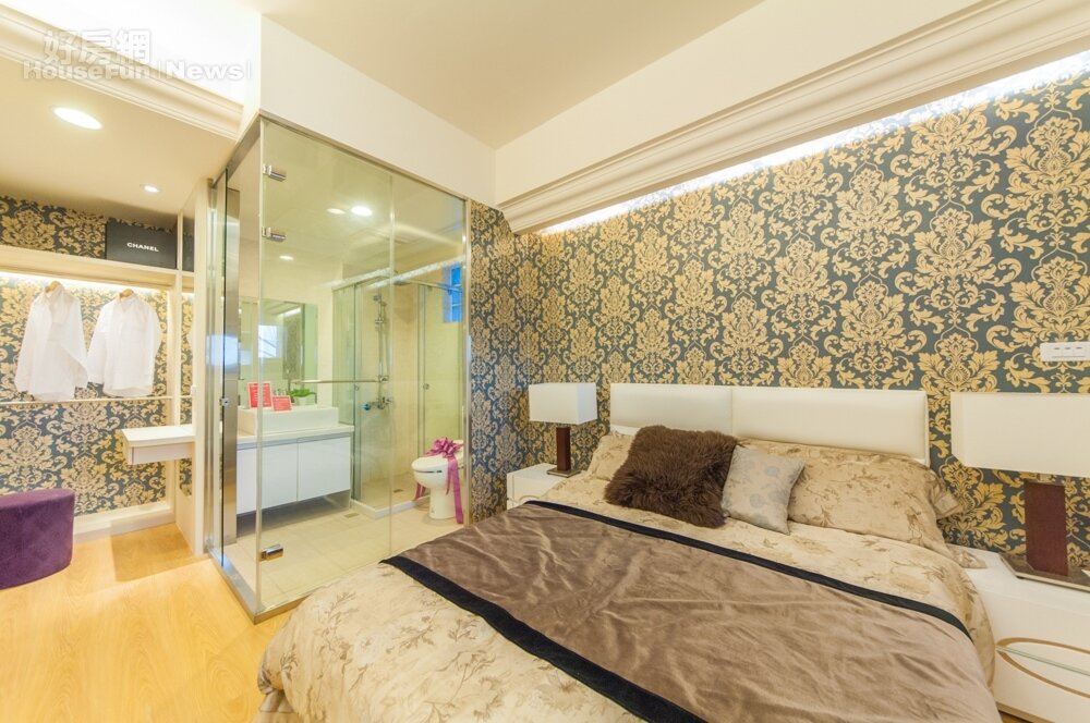 小坪數也有大空間,善用玻璃營造寬廣視覺 為了提升空間感,設計師大膽的採用如汽車旅館中透明浴室的做法,將整個淋浴間採用全透明玻璃設計。甚至還隔出了一間小小的更衣室。對於剛結婚還濃情蜜意的夫妻而言或許是一種情趣,不過對於生活已經趨於平淡的老夫老妻而言,效果則是兩極化。想要仿這樣裝潢的讀者可要多考慮一下。 1184 上一張 下一張
