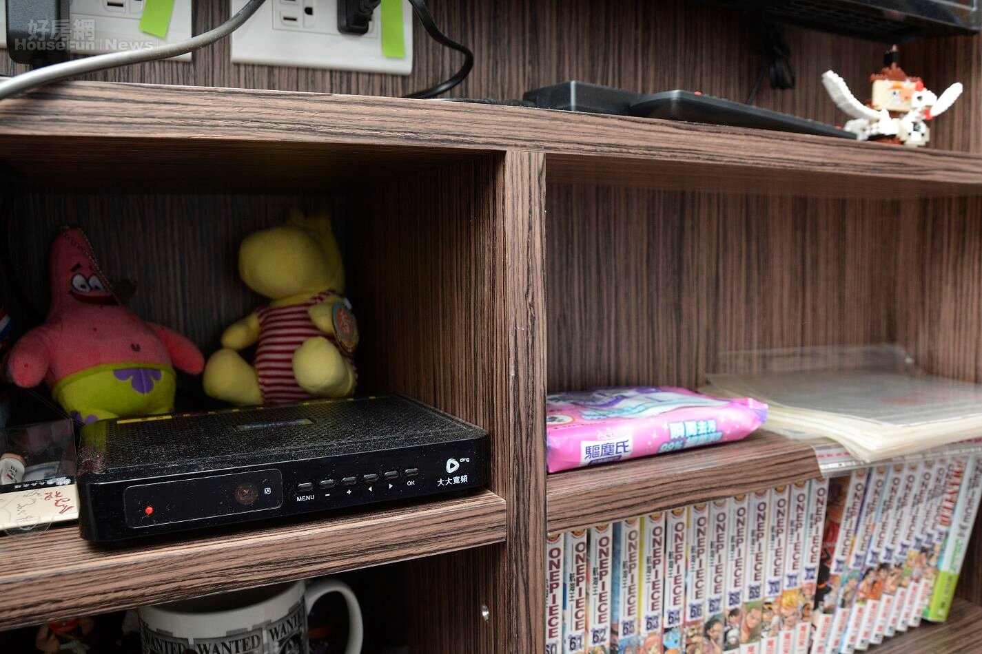 利用櫃子讓不平整的牆面平整,這樣的櫃子會明顯發現深淺不同
